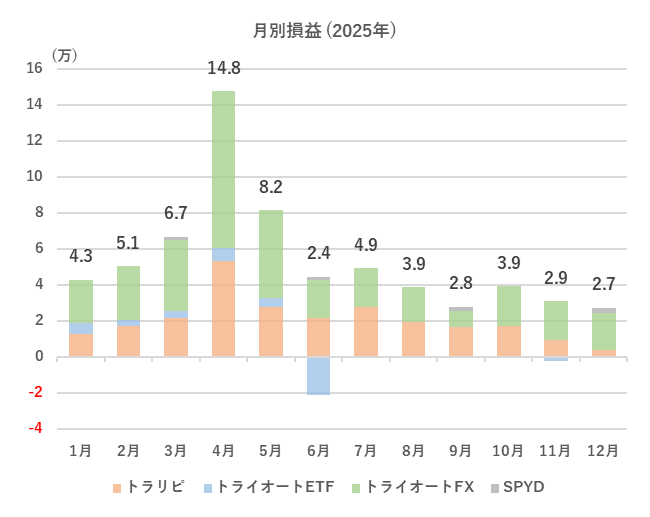 2025年の月別の収益をまとめました。
