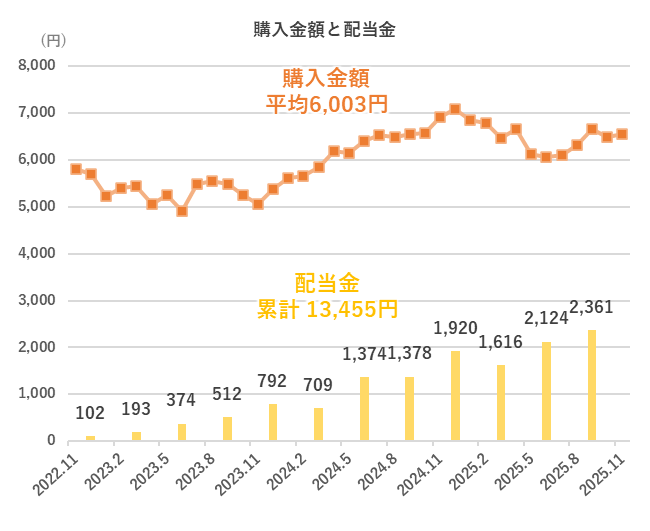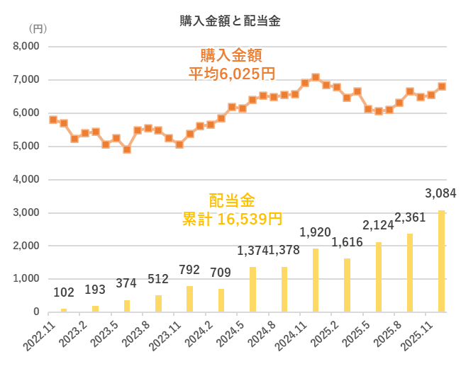 2022年11月から自動購入(定期積立)をはじめて、これまでの購入金額と配当をまとめてみました。