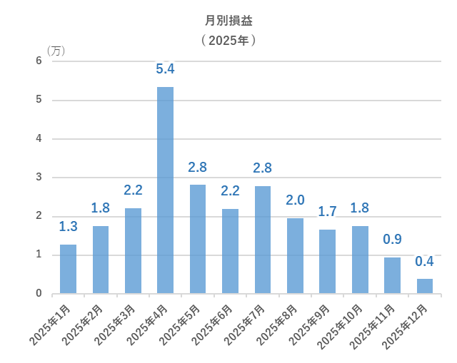 月によって差がありますが、年間を通して利益は積み上がっています。