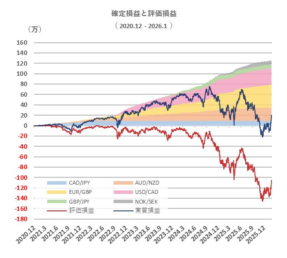 これまでに6つの通貨ペアを運用し、合計で120万円以上の利益をだしています。