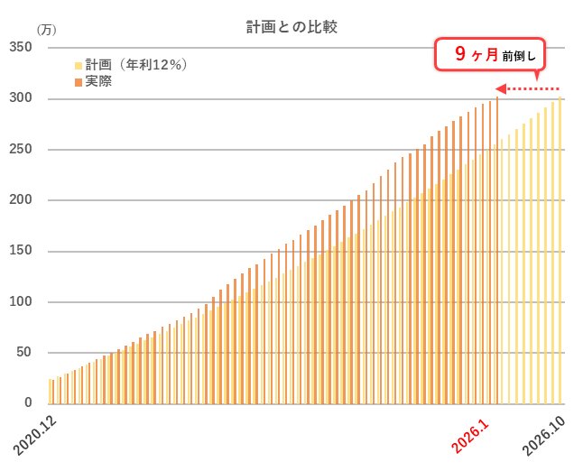 短期間で見ると上下はありあますが、長期間で見ると計画よりも順調に運用出来ているので、今のところは安心して続けられています。