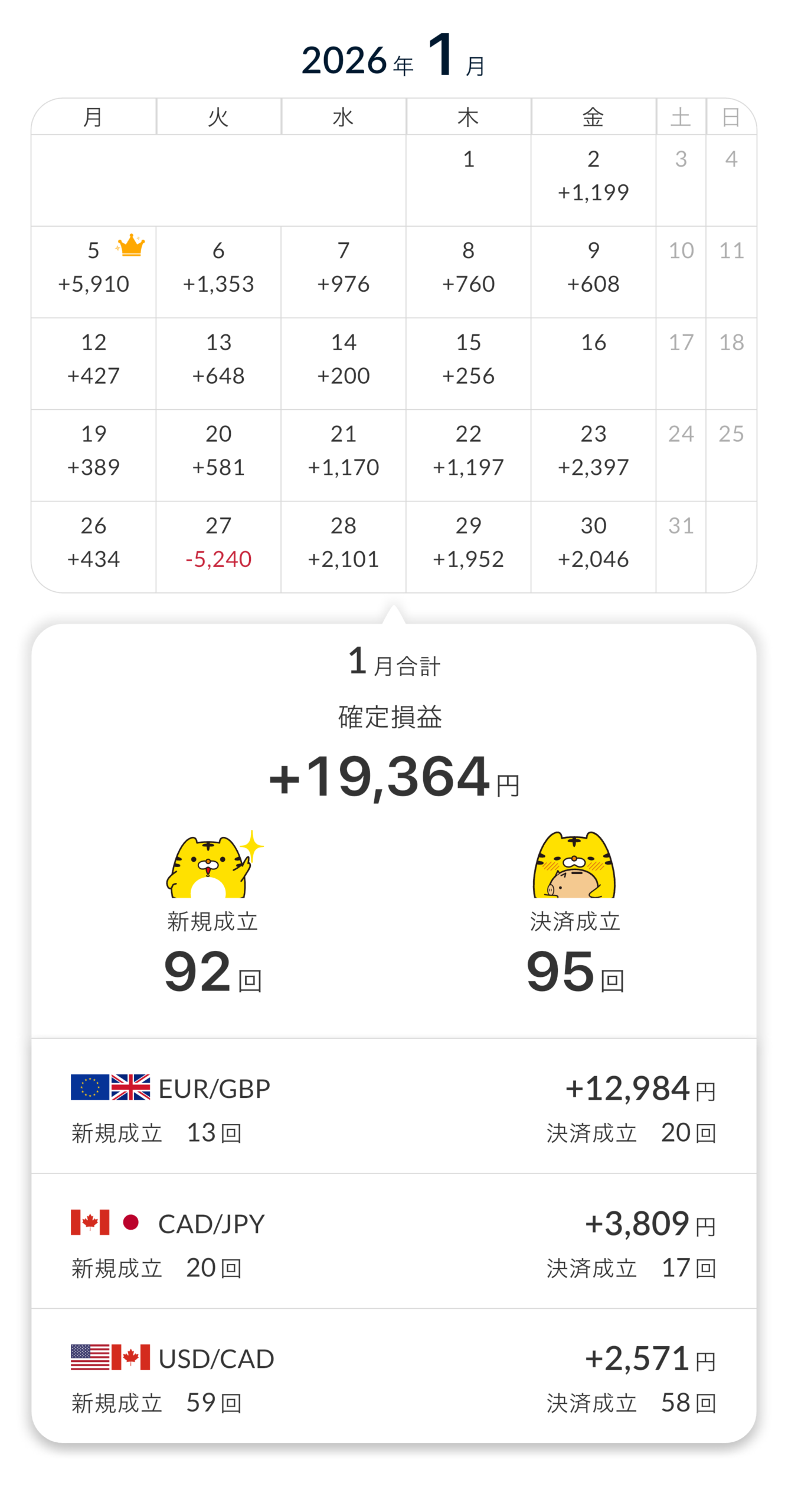今月の実現損益:+19,364 円