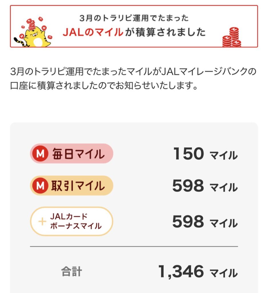 トラリピでJALマイルが貯まる?実績を公開【毎月更新】