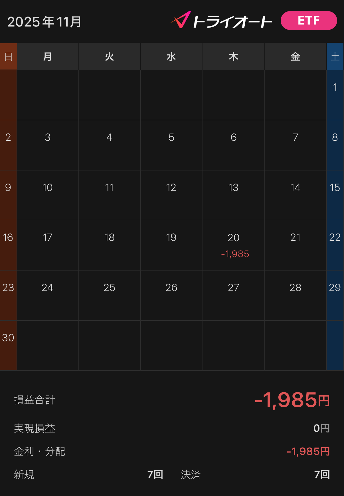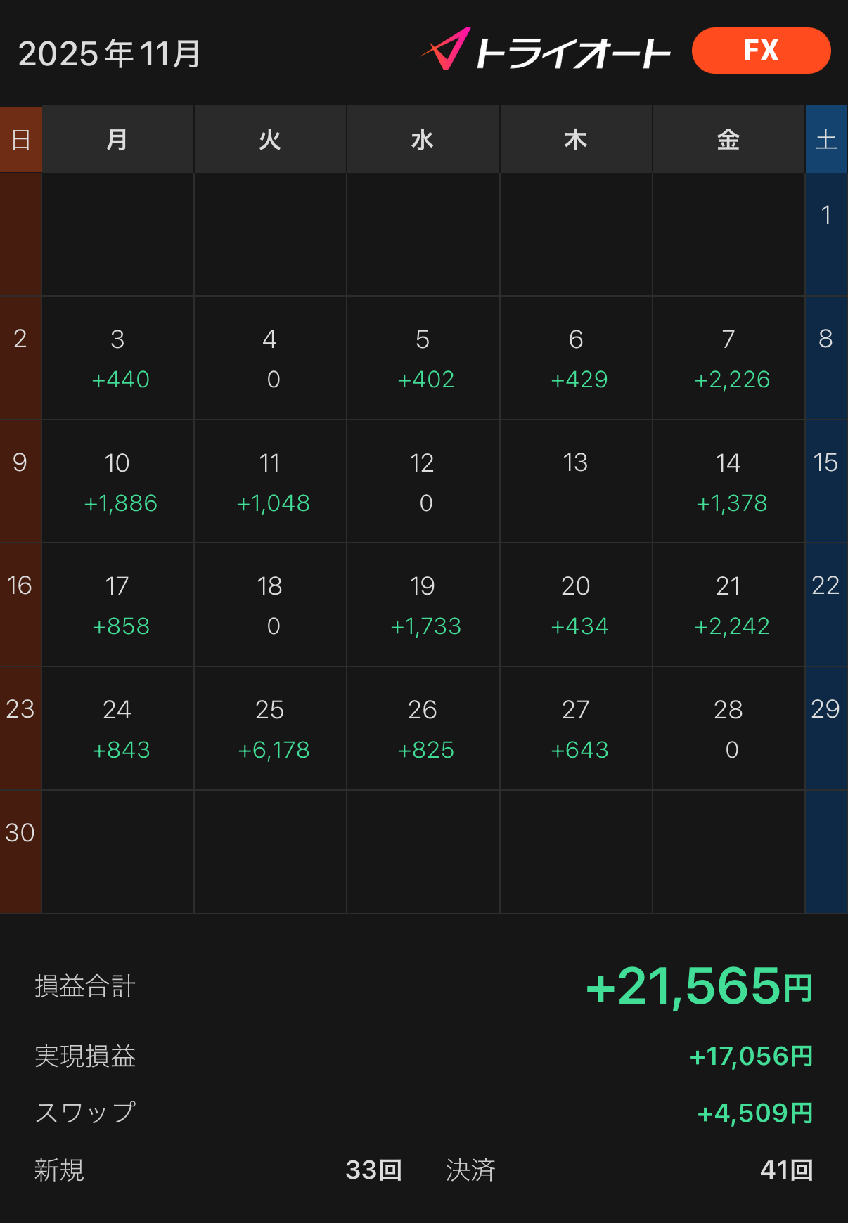 この記事では、2025年11月のトライオートETF・FXの運用実績や設定、リスク管理について紹介しました。