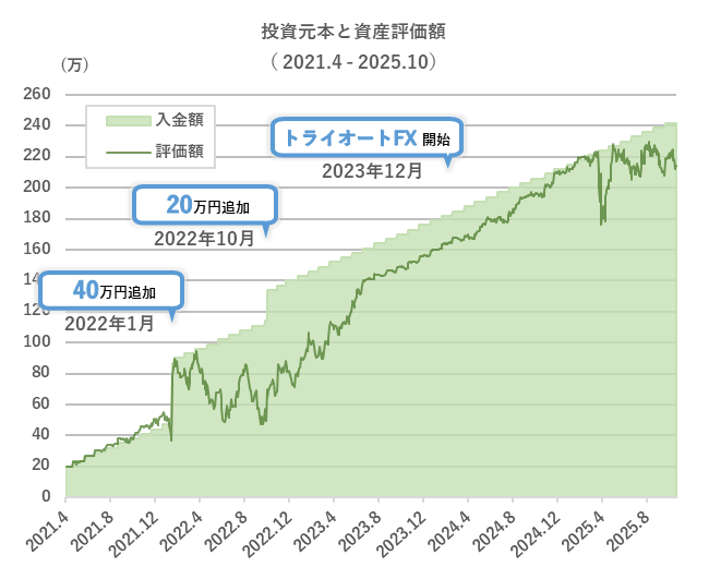 この記事では、2025年10月末時点での運用実績や設定、リスク管理の工夫を正直にシェアします。