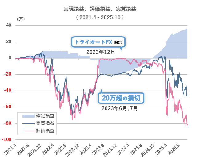 2023年12月からはトライオートETFの不調を補うためにトライオートFXをはじめています。