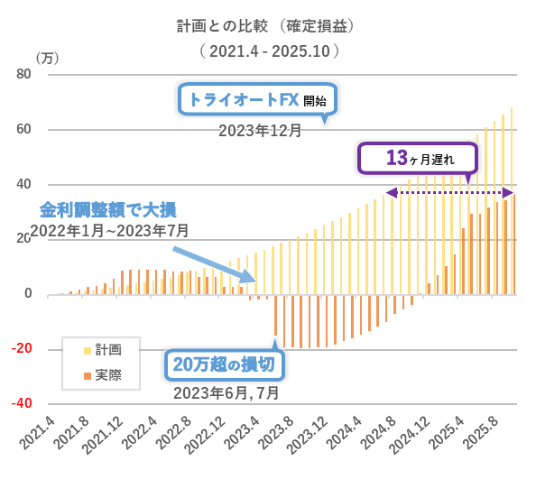 今月はダメでしたが、トータルでは計画以上に利益が出ているので、問題なしです。